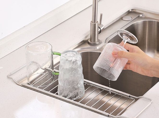 네오트리의 스텐304 길이조절 슬라이드 식기건조대는 식기를 깔끔하게 보관할 수 있는 편리한 아이템입니다. 주방 내부를 깔끔하게 정리하고 싶은데 공간이 부족한 분들이나 식기건조를 손쉽게 하고 싶은 분들에게 적합한 제품이죠.