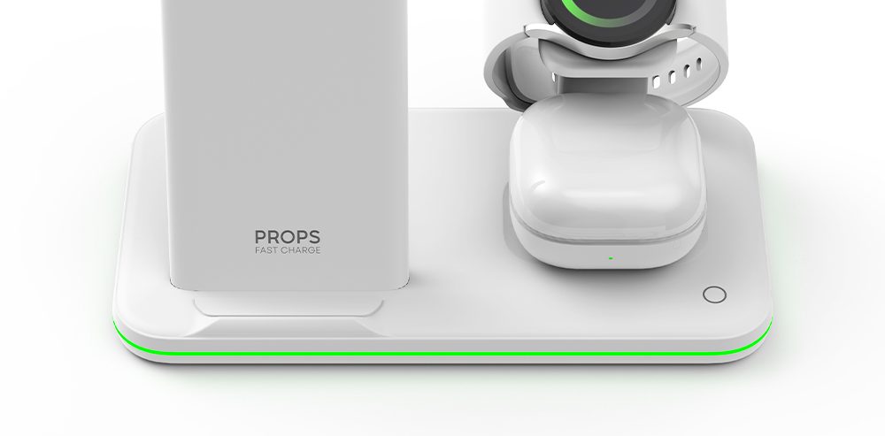2. 다기능 동시 충전: 프롭스 3in1 무선충전기는 갤럭시 워치와 갤럭시 버즈를 동시에 충전할 수 있는 슬롯을 제공합니다. 겹쳐서 놓을 필요 없이 각 디바이스를 편리하게 충전할 수 있습니다.