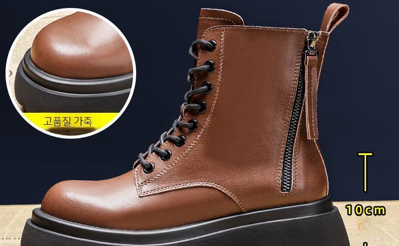 A: 더블 지퍼 플랫폼 마틴 부츠는 부드러운 인공 가죽 소재로 제작되었습니다.