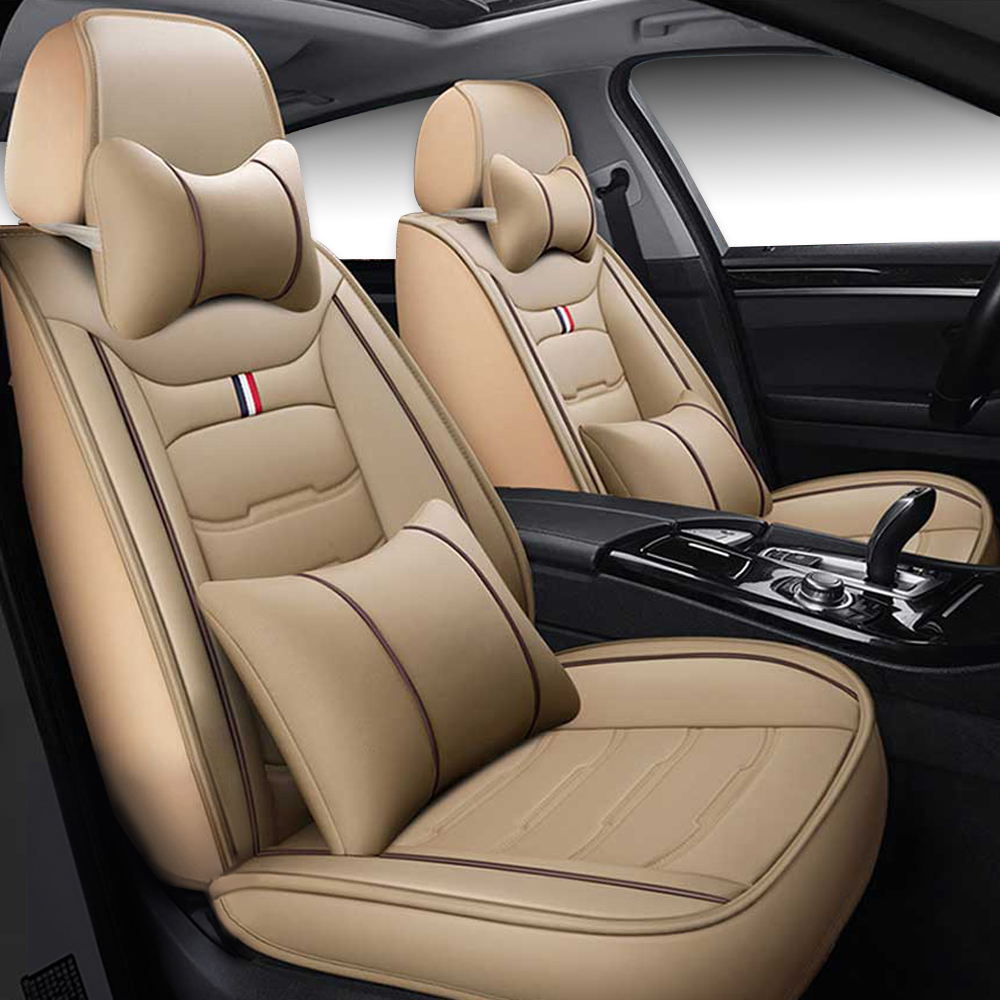 오토핏 4D 가죽 시트커버 앞 2p + 뒤 + 목쿠션 2p + 등쿠션 2p 세트, 베이지, 1세트