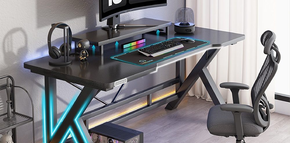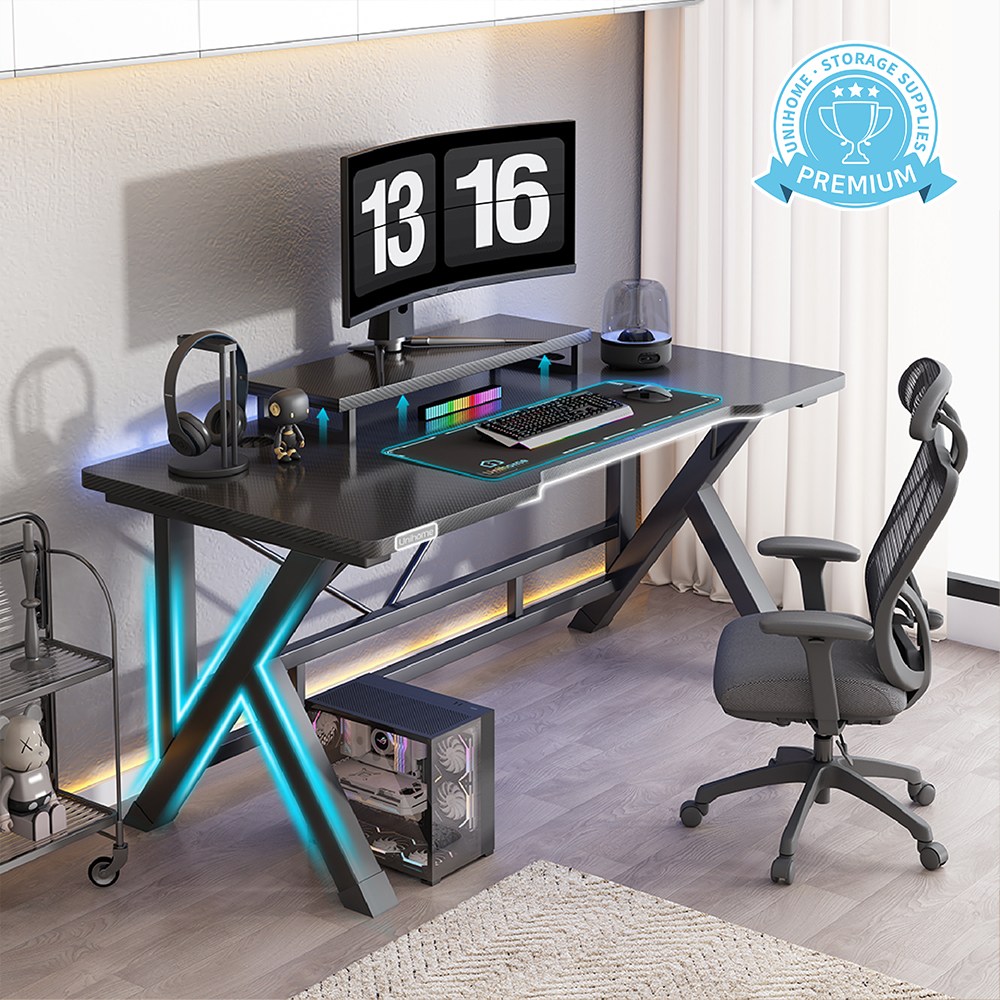 Unihome K자형 고급 컴퓨터 게이밍 책상 멀티 데스크 테이블은 혁신적인 K자 형태의 디자인으로 게이머들에게 높은 착상감과 편안한 작업환경을 제공합니다.
